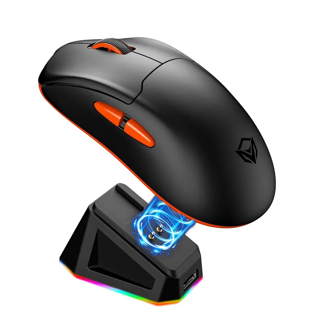 Meetion GW39 — многофункциональная мышь с три-режимным подключением (2.4 GHz, Bluetooth, провод) для быстрой смены устройств. Оснащена высокопроизводительным сенсором PAW3104 (до 8000 DPI) и RGB-подсветкой для персонализации. Прочный аккумулятор обеспечивает продолжительную работу в играх и офисе. Эргономичный дизайн и PTFE-подошвы обеспечивают плавное скольжение, а высокая частота опроса гарантирует отзывчивость управления.