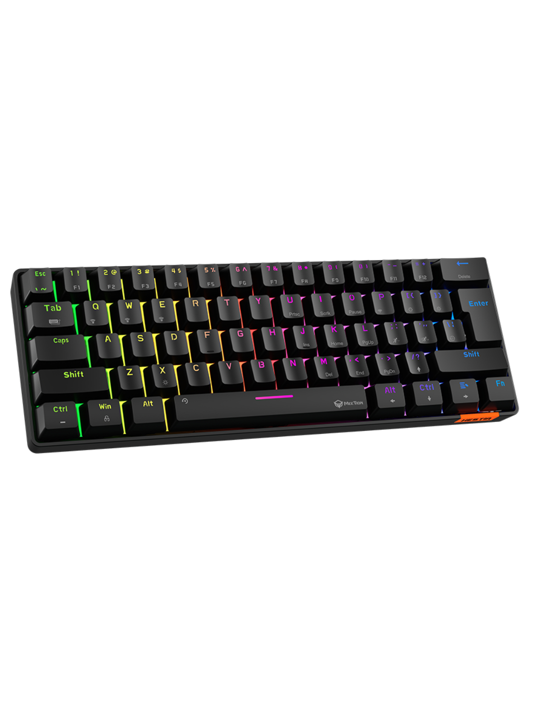 Meetion MK005BT — компактная механическая игровая клавиатура формата 60% с двухрежимным беспроводным подключением Bluetooth, созданная для геймеров и офисных пользователей, которым важны производительность и экономия пространства. Синие механические переключатели OUTEMU обеспечивают чёткий звук нажатия и выраженную тактильную обратную связь, повышая точность и комфорт при игре и наборе текста.